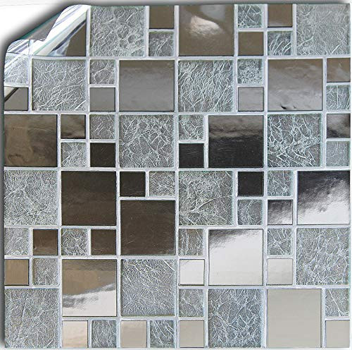 Color: Metallic Silver Chrome Kitchen bathroom waterproof 6x6 inches tiles transfers grey silver chrome mirror 6x6 inches backsplash uk glitter kitchen tile stickers